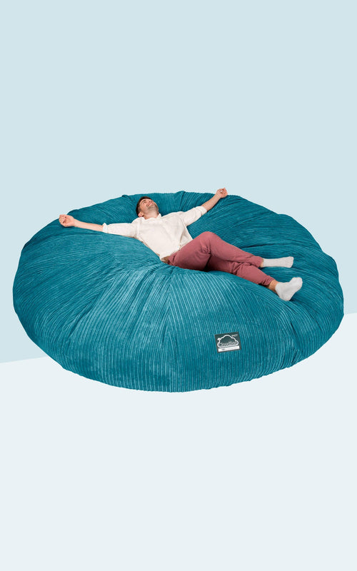 Lounge Pug, 2-sits Saccosäcksoffa, Klassisk Manchestertyg Turkos– Big Bertha Original SE