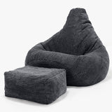 Highback-modellen är den idealiska universalsaccosäcken. Dessa saccosäckar är avsedda för vuxna, men så klart får barnen vara med också! Stolmodellen med hög rygg är mycket populär för dess omslutande kokongkänsla och ergonomiska form. Trots det kan de stuvas undan smidigt när den inte används.