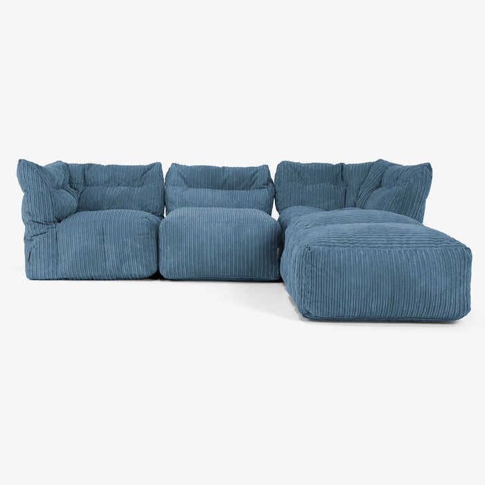 Lounge Pug Modulsoffa 3-sits med Schäslong och Armstöd - Klassisk Manchestertyg Marinblå– Big Bertha Original SE
