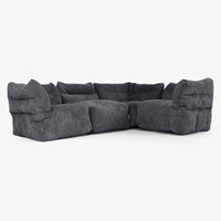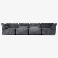 Denna fyra-delade modulära soffa ger dig full frihet att arrangera sittplatserna efter hemmet och din livsstil. Ställ upp den som en klassisk L-formad soffa för en mysig familjehörna, perfekt för avkoppling, läsning eller filmkvällar. Eller separera modulerna i individuella sittplatser för extra platser vid gäster. Varje sektion flyttas enkelt för att anpassa sig efter dina behov, med mjuk, stödjande sittkomfort och känslan av en saccosäck, med struktur som fungerar för vardagsliv i familjen.