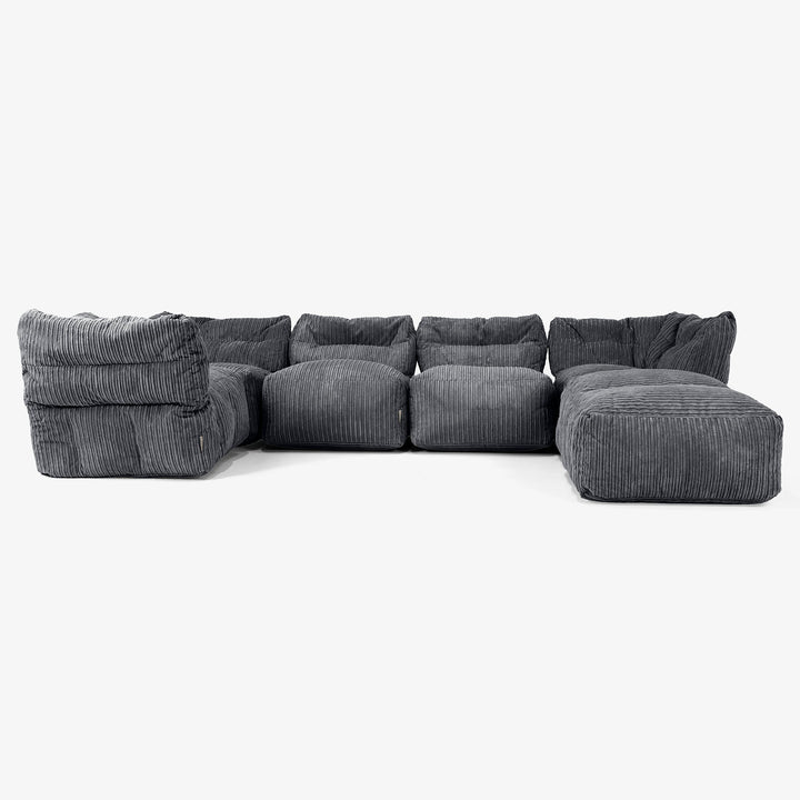 Denna femdelade modulära soffa ger dig full frihet att arrangera sittplatserna efter hemmet och din livsstil. Ställ upp den som en klassisk L-formad soffa för en mysig familjehörna, perfekt för avkoppling, läsning eller filmkvällar. Eller separera modulerna i individuella sittplatser för extra platser vid gäster. Varje sektion flyttas enkelt för att anpassa sig efter dina behov, med mjuk, stödjande sittkomfort och känslan av en saccosäck, med struktur som fungerar för vardagsliv i familjen.